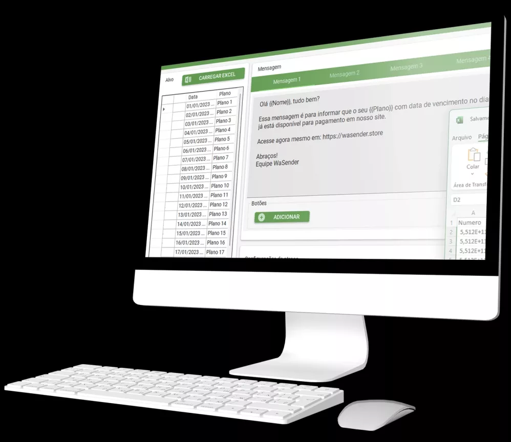 Permite importar listas de contatos de um arquivo Excel e enviar mensagens personalizadas para cada um.